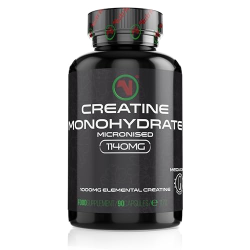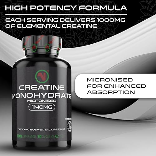 Creatine Monohydrate Mega Capsules – Pre Workout & Post Workout Supplement for Muscle Performance & Recovery – 1000mg Elemental Creatine Per Capsule – 3 Capsules Per Day (Mega Caps x 90)