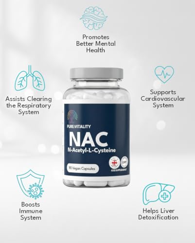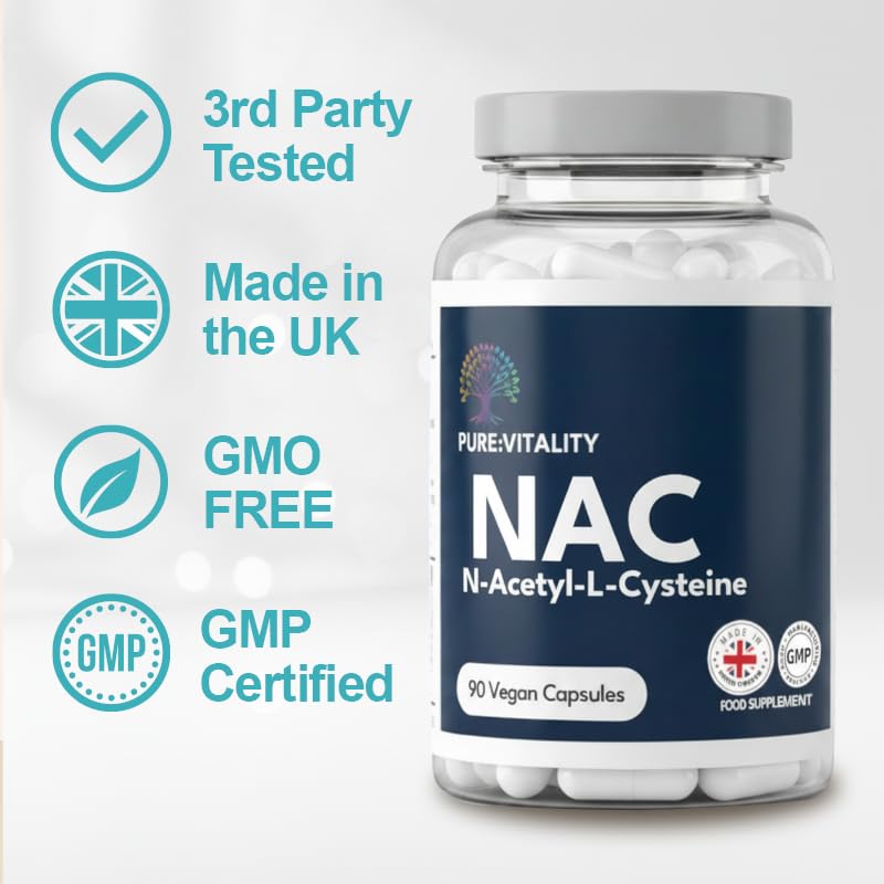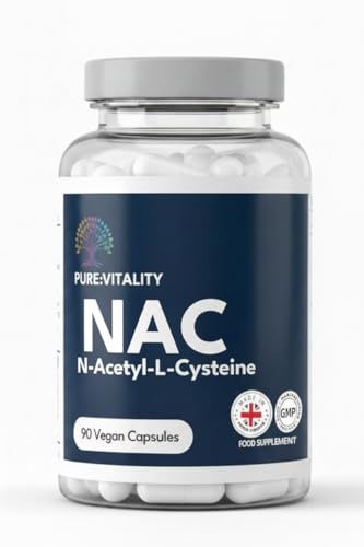 Pure Vitality: NAC Supplement 600mg x 90 Capsules, Pure NAC Acetylcysteine for Glutathione, Detox, Post Workout Supplements for Men & Women, N-acetylcysteine (L Cysteine) – GMP & HACCP Certified – UK