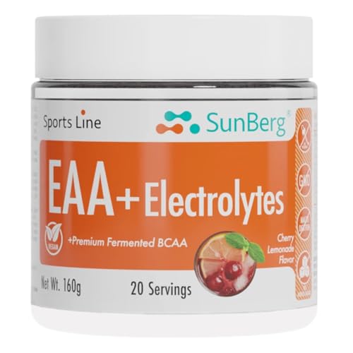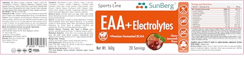 Sunberg EAA + Electrolytes Powder Supplement – 160g Essential Amino Acids BCAAs Post Workout Muscle Recovery Leucine Drink – 20 Servings (160g, Cherry Lemonade)