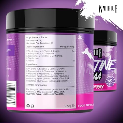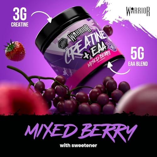Warrior Creatine Monohydrate Powder + EAA 270g (30 Servings) – Pure Creatine with Essential Amino Acid Supplements for Muscle Recovery & Growth, Pre & Post Workout for Men & Women – Mixed Berry