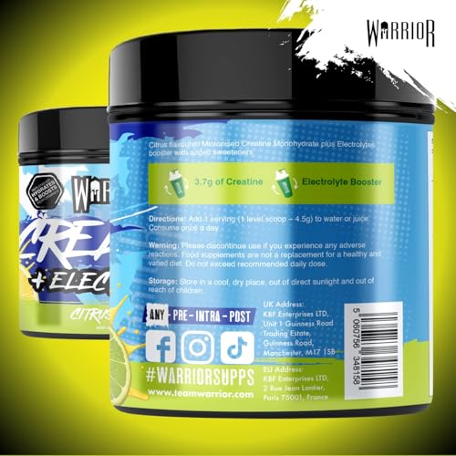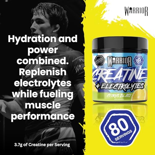 Warrior Creatine Monohydrate Powder + Electrolytes Powder 360g (80 Servings) – Performance, Hydration, Pre & Post Workout for Men & Women – Micronized Creatine + Electrolyte Supplement, Citrus Blast