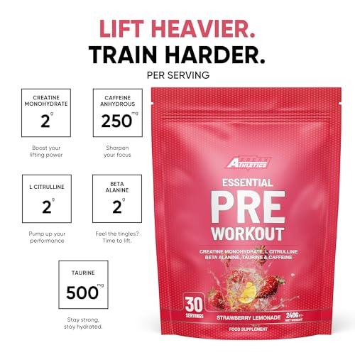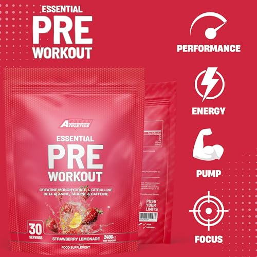 Freak Athletics Essential Pre Workout Powder – Strawberry Lemonade Pre Workout – 240g 30 Servings (240G, Strawberry Lemonade)