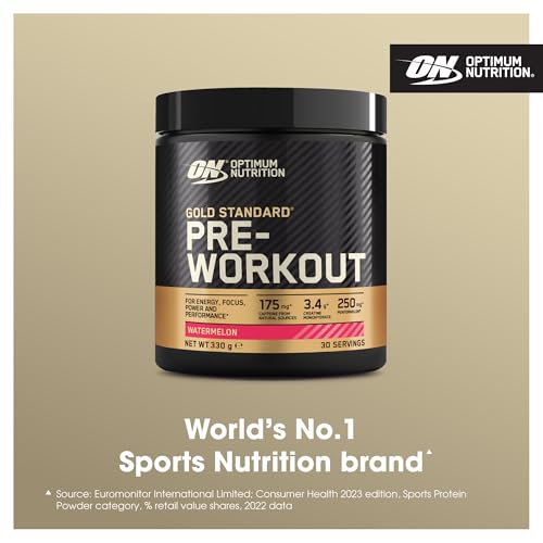 Optimum Nutrition Gold Standard Pre Workout Powder, Energy Drink with Creatine Monohydrate, Beta Alanine, Caffeine and Vitamin B Complex, Nutrition Supplement, Watermelon Flavour, 30 Servings, 330 g