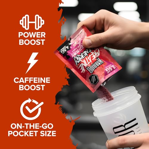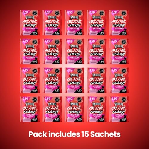 Warrior Creatine Plus Energy Pre Workout Sachets, High Strength Creatine Monohydrate Drink Mix with Caffeine and B Vitamins, Zero Sugar Muscle Energy and Recovery, 15 Sachets