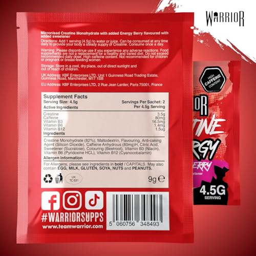 Be the first to review “Warrior Creatine Plus Energy Pre Workout Sachets, High Strength Creatine Monohydrate Drink Mix with Caffeine and B Vitamins, Zero Sugar Muscle Energy and Recovery, 15 Sachets”