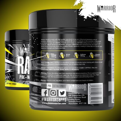 Be the first to review “Warrior Rage Pre Workout Powder 392g (45 Servings) – 300mg Caffeine High Stim Energy Drink Supplement + Beta-Alanine, Creatine, BCAA, Taurine, Citrulline & Arginine AAKG for Muscle – Lightin’ Lemonade”
