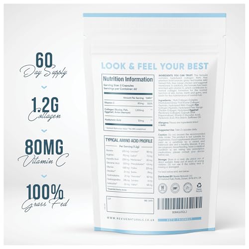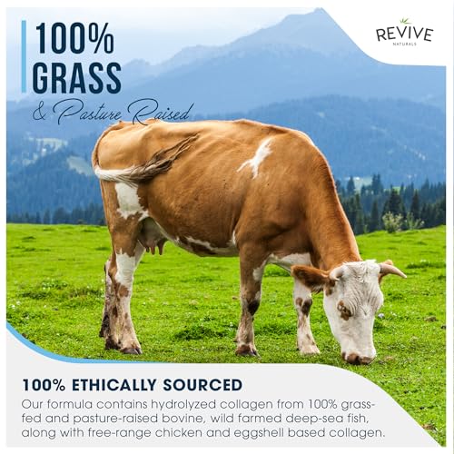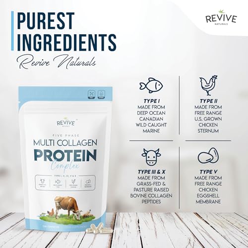 Multi Collagen Protein Capsules – 120 Count – Types I, II, III, V & X – Hydrolysed Grass Fed Bovine, Wild Caught Marine & Free-Range Chicken, Made with Hyaluronic Acid & Vitamin C by Revive Naturals