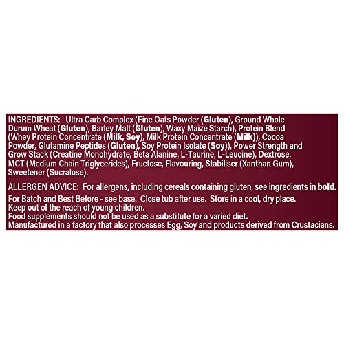 💪𝐏𝐨𝐰𝐞𝐫, 𝐒𝐭𝐫𝐞𝐧𝐠𝐭𝐡 & 𝐆𝐫𝐨𝐰𝐭𝐡 𝐒𝐭𝐚𝐜𝐤: Our Lean muscle mass protein is a powerhouse, featuring Creatine Monohydrate, Beta-Alanine, L-Taurine, and L-Leucine, combined with our signature Ultra Carb Complex. This blend, including ground whole oats, ground durum wheat, barley malt, low DE waxy maize, and Whey protein concentrate, fuels your power, strength, and muscle growth ambitions.