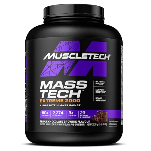MuscleTech MassTech Extreme Protein Powder, Weight & Muscle Mass Gainer, Whey Mass Protein Powder With 3g Creatine, 80g Protein, 2,274 Calories, 2.72kg, Triple Chocolate