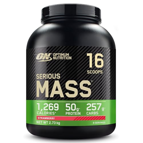 Optimum Nutrition Serious Mass Protein Powder High Calorie Mass Gainer with Vitamins, Creatine and Glutamine, Strawberry, 8 Servings, 2.73 kg, Packaging May Vary