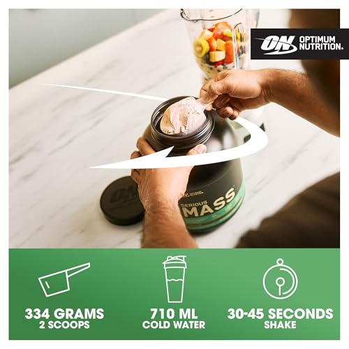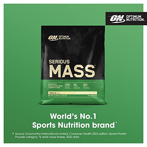 Optimum Nutrition Serious Mass Protein Powder with Creatine, Glutamine, 25 Vitamins and Minerals, Vanilla Flavour, 16 Servings, 5.45KG
