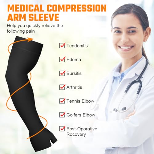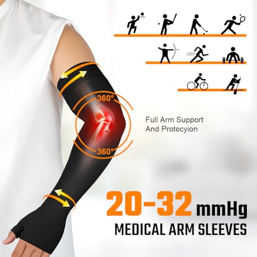 【PHYSICAL MITIGATION】Arm compression sleeves effectively relieve swelling and accelerate lactic acid metabolism by promoting blood circulation, thereby improving performance and speeding up arm recovery. And They relieves varicose veins, lymphedema, and lipedema caused by circulatory impairment in the arm. It is ideal for treating and relieving arthritis, tendonitis, bursitis, tennis elbow, and carpal tunnel syndrome.