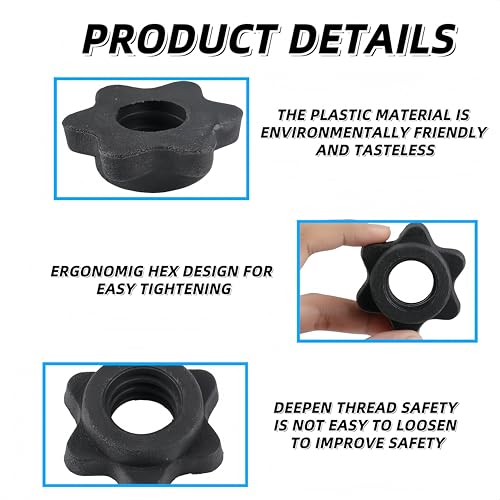 Sturdy and Long Lasting: The barbell clamps made of high-quality PVC, strong and durable, can be used for a long time. Hex nut collar is easily to move the plate conveniently and quickly. Safe and reliable can provide balance and stability.