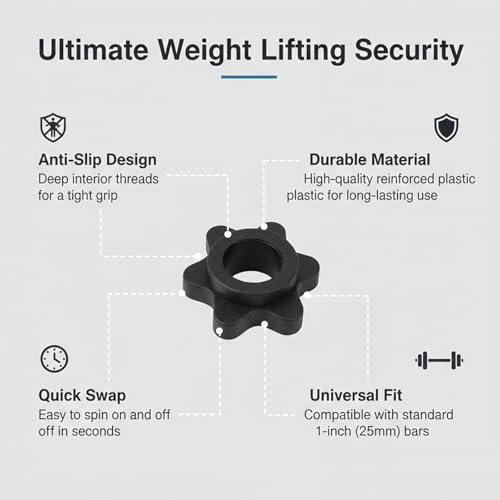 【Non-Slip Grip & Safety】 Features a rubber-edged collar for a tight, anti-slip grip on the bar. Adds stability and safety for home or gym use.