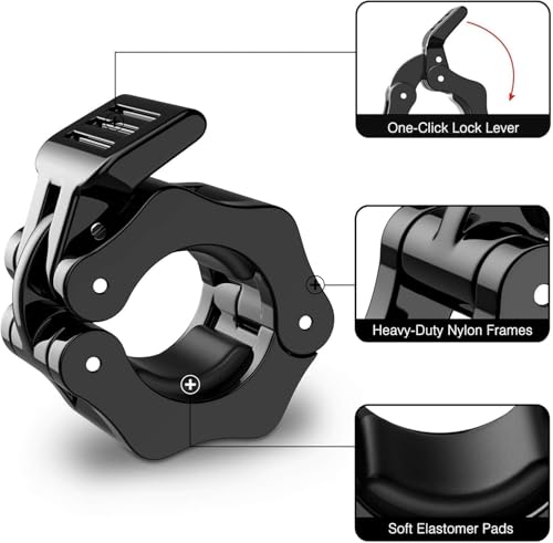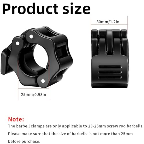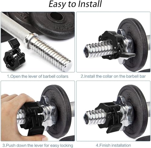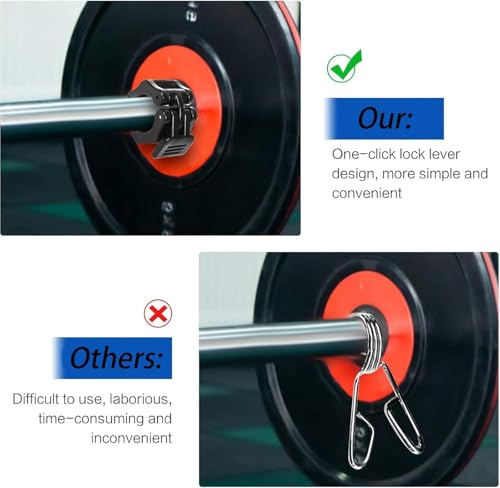 The non-slip barbell collar clips are designed with fast release and locking actions, which allow you to open and close with one finger easier.