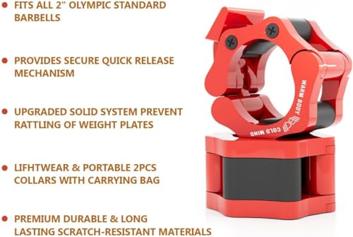 WARM BODY COLD MIND Reinforced Olympic Barbell Clips – 2 inch / 50mm – Barbell Collars, Weight Clips for Bars, Barbell Clamps for Olympic Bar, Gym Weightlifting Fitness Crossfit