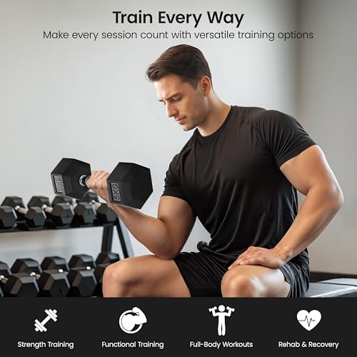 Hex Shape That Stays Put: The flat-sided hex heads of this home gym free weight set prevent rolling and create a secure base for push-up holds, expanding your exercise options while keeping workouts efficient and uninterrupted