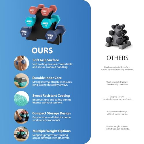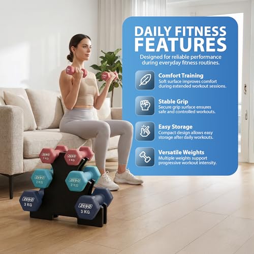 ZENO Dumbbells Set | Dumbbells Set Women | Weights Dumbbells Set | Anti-Slip Dumbbells | Sweat Resistant Weights for Women | 1KG Dumbbells Pair, 2KG Dumbbells Pair, 3KG Dumbbells Pair
