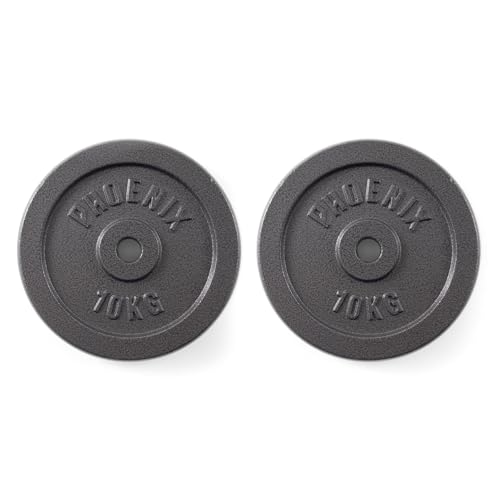 Phoenix Fitness Cast Iron Weight Plates – 1-Inch Free Weight Plate for Barbell Dumbbell Bars, Weightlifting & Strength Training at Home Gym – Singles, Pairs or Set of 4: 1.25kg, 2.5kg, 5kg, 10kg, 20kg