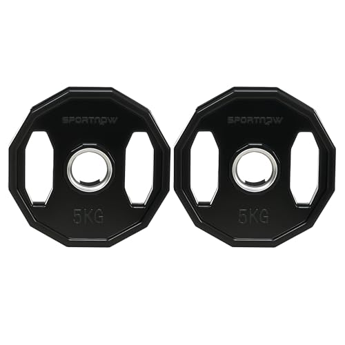 SPORTNOW Olympic Weight Plates Set, Metal and Rubber Bumper Plates Weights Discs with 2″/5cm Holes, for Home Gym Weight Lifting Strength Training, 2 x 5kg/2 x 10kg, Black