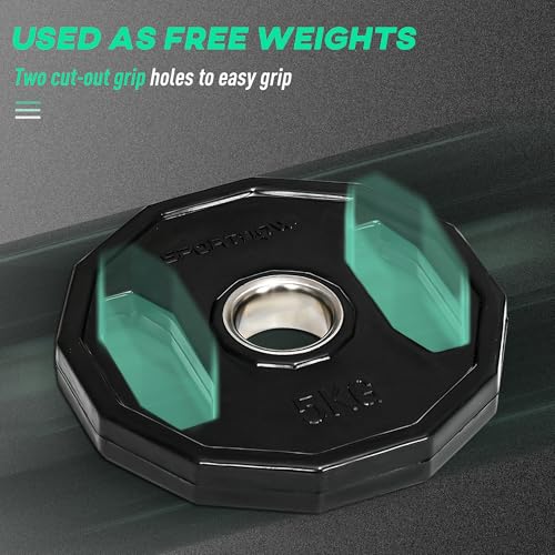 Ergonomic design: Each 5kg weight plate includes dual cut-out holes to ensure a secure and comfortable grip during bar-free weight exercises and easy storage.