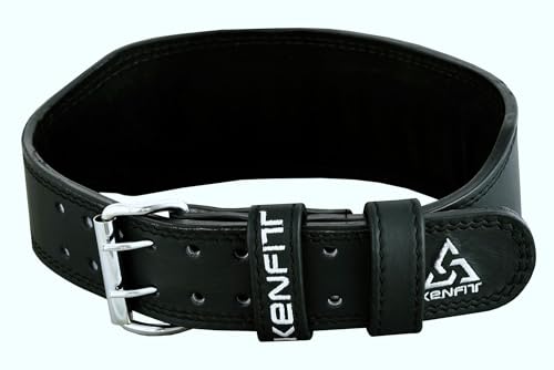 Weight Lifting Leather Belt for Gym & Powerlifting – Kenfit 4″ & 6″ Buffalo Hide Padded Strap | 10 Adjustable Holes for Heavy Squats, Deadlifts & Exercise | Back Support for Men & Women