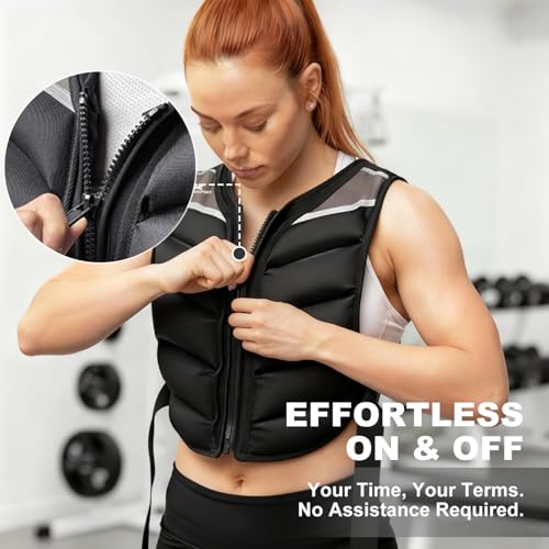【Easy On, Easy Off – Train Unassisted】No more struggling with complex straps! The smooth front zip design allows you to get in and out of the vest in seconds, completely by yourself. Maintain your workout flow and independence—perfect for high-intensity intervals where every second counts. Your focus stays on your performance, not on your gear.