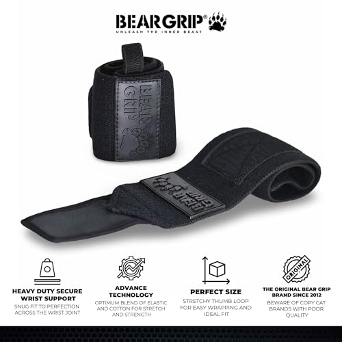 BEAR GRIP Weight Lifting Wrist Wraps Support – Gym Straps for Powerlifting, Bodybuilding, Fitness, Gym Training, Workout, Gymnastics, Calisthenics (Sold in Pairs)