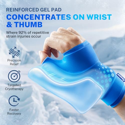 Thumb & Wrist Ice Pack Wrap, Reusable Gel Pad for Carpal Tunnel Relief, Ergonomic Fit, Thickened Long Lasting Hot/Cold Pack for Arthritis, Computer Overuse Injuries, Sports Injuries, S/M