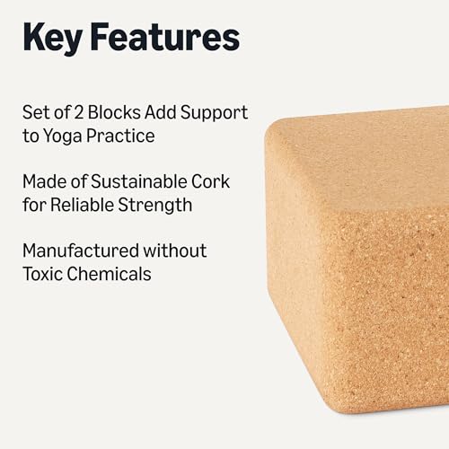 Amazon Basics Natural Cork Yoga Block, 23 x 15 x 8 cm, Set of 2