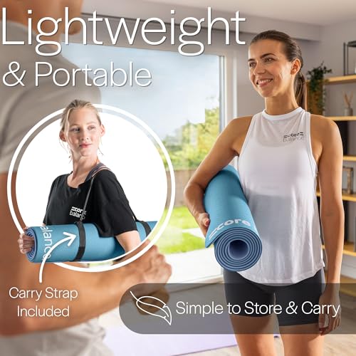 Core Balance Yoga Mat, Non Slip 6mm Thick TPE Foam for Gym Fitness Exercise Pilates Training, Lightweight & Compact with Travel Strap, 183cm x 65cm x 0.6cm (Choose Plain or with Alignment Lines)