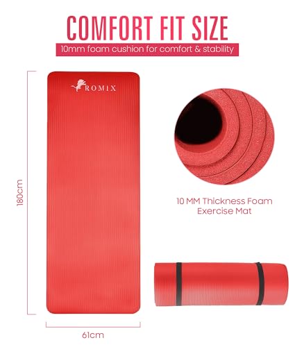 ROMIX Yoga Mat Thick 10 MM Foam Exercise Mat, 180x60x1cm Non Slip Gym Mats With Carry Bag and Strap, Yoga Mats for Women Men Pilates Mat Gymnastics Meditation Home Outdoor