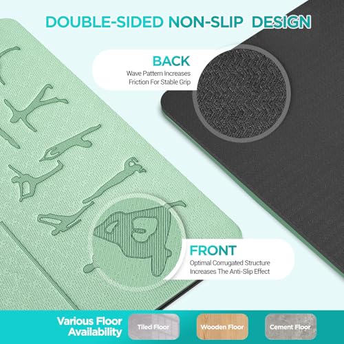 IMPROVE THE EFFECT OF YOGA PRACTICE: This yoga mat is engraved with clear and precise asana lines and yoga poses with laser printing technology, which can help you better control your body position and posture. Therefore, this yoga mat can reduce the difficulty of practicing gymnastics or Pilates and improve the effect of sports practice, which is the best choice for yoga beginners to buy a sports ma