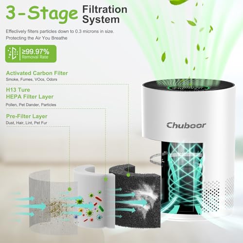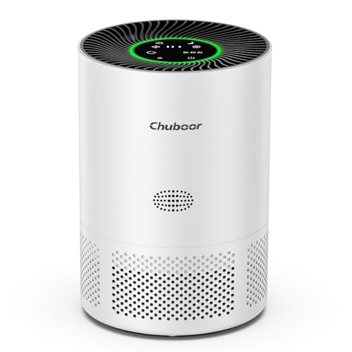 Chuboor Air Purifier for Bedroom Home,CADR 305m³/h, 5 Speed, 3 Timer, Quiet Sleep Mode, HEPA Air Purifier for Bedroom/office/Living Room for Pet Hair/Dust/Allergie/Pollen/Odor-PJ01 White