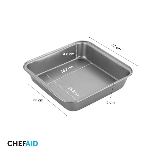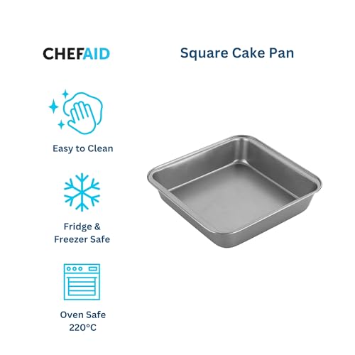 Chef Aid 20cm Non-Stick Square Cake Tin, Carbon Steel Cake pan with Even Heat Distribution, Ideal for All Cake Styles and Perfect for Traditional Tray Bakes of Lasagne or Shepherds Pie