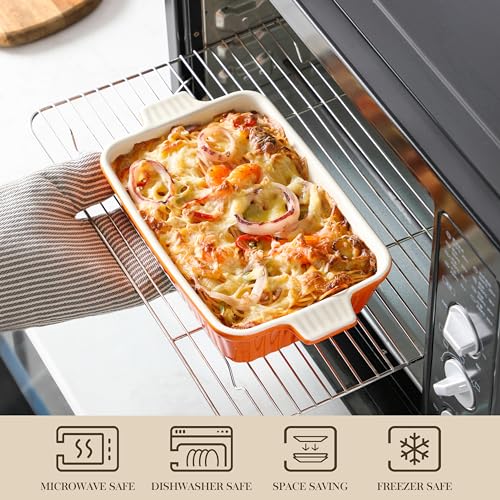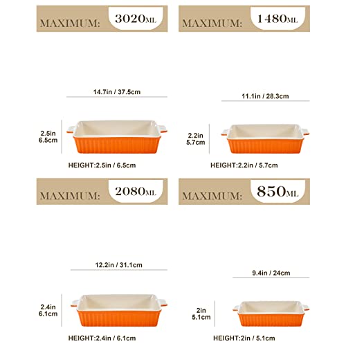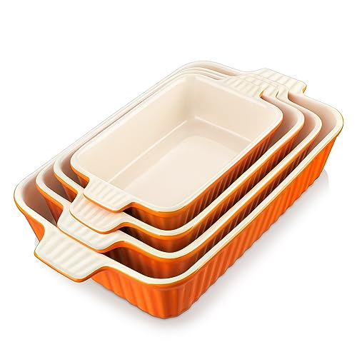 MALACASA Bakeware Set of 4, Porcelain Baking Pans Set for Oven, Casserole Dish, Ceramic Rectangular Baking Dish Lasagna Pans for Cooking Cake Kitchen, Orange(9.4″/11.1″/12.2″/14.7″), Series Bake.Bake
