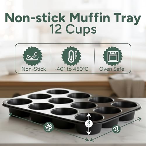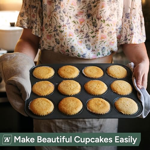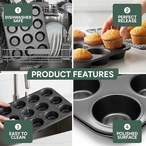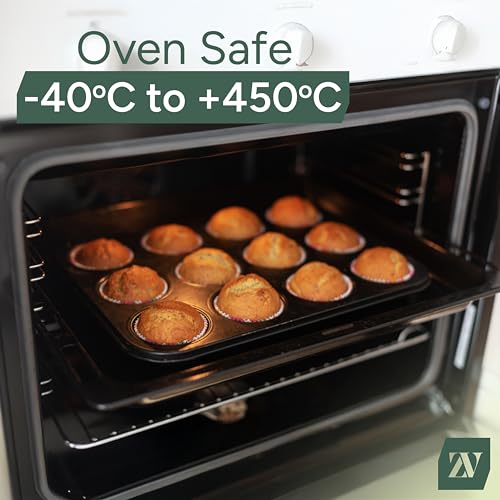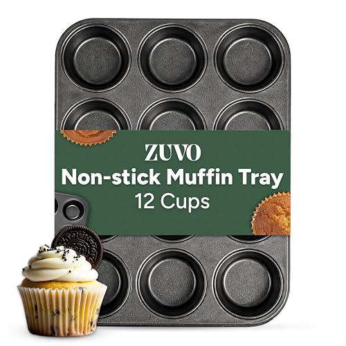 Zuvo Nonstick 12 Cup Muffin Tray – BPA Free & Dishwasher Safe Cupcake Pan Muffin Tray with Stain-Resistant, Baking Mould for Muffins or Cupcakes, Bakeware – (Black)