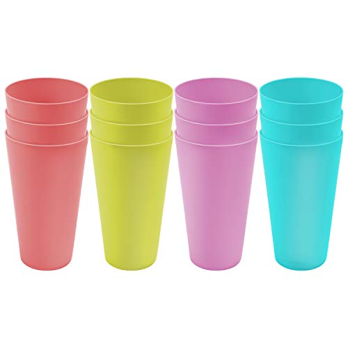 BELLE VOUS 12 Pack Coloured Plastic Cups – 600ml/20 fl oz – Reusable Drinking Tumblers in 4 Colours – Hard Plastic Drinkware for Parties, Camping, BBQs, Picnics & Beach – Dishwasher Safe & BPA Free