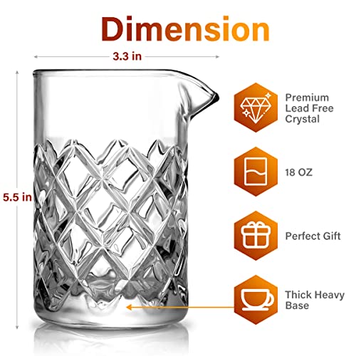 Cocktail Mixing Glass – [18 OZ] Crystal Cocktail Stirring Glasses, Thick Weighted Bottom – Bar Bartenders Tools Mixing Glass for Craft Bars & Professional Bartenders