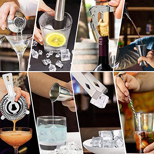 ❤️【Surprisingly Quality Bartending Kit】The cocktail making set is made of the highest quality stainless steel,which does not leech harmful chemicals nor affect your beverages’ flavors. It is durable and easy to clean. Each cocktail accessory is carefully made to provide you with a reliable way to make all your favorite drinks like Margaritas, Martini, Daiquiris, and Mojitos at home or bar.