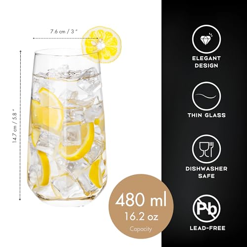 VERSATILE GLASSWARE: These highball glasses are incredibly versatile, making them perfect for serving water, juice, whiskey, spirits, or highball cocktails at dinner parties or for daily use around your home.