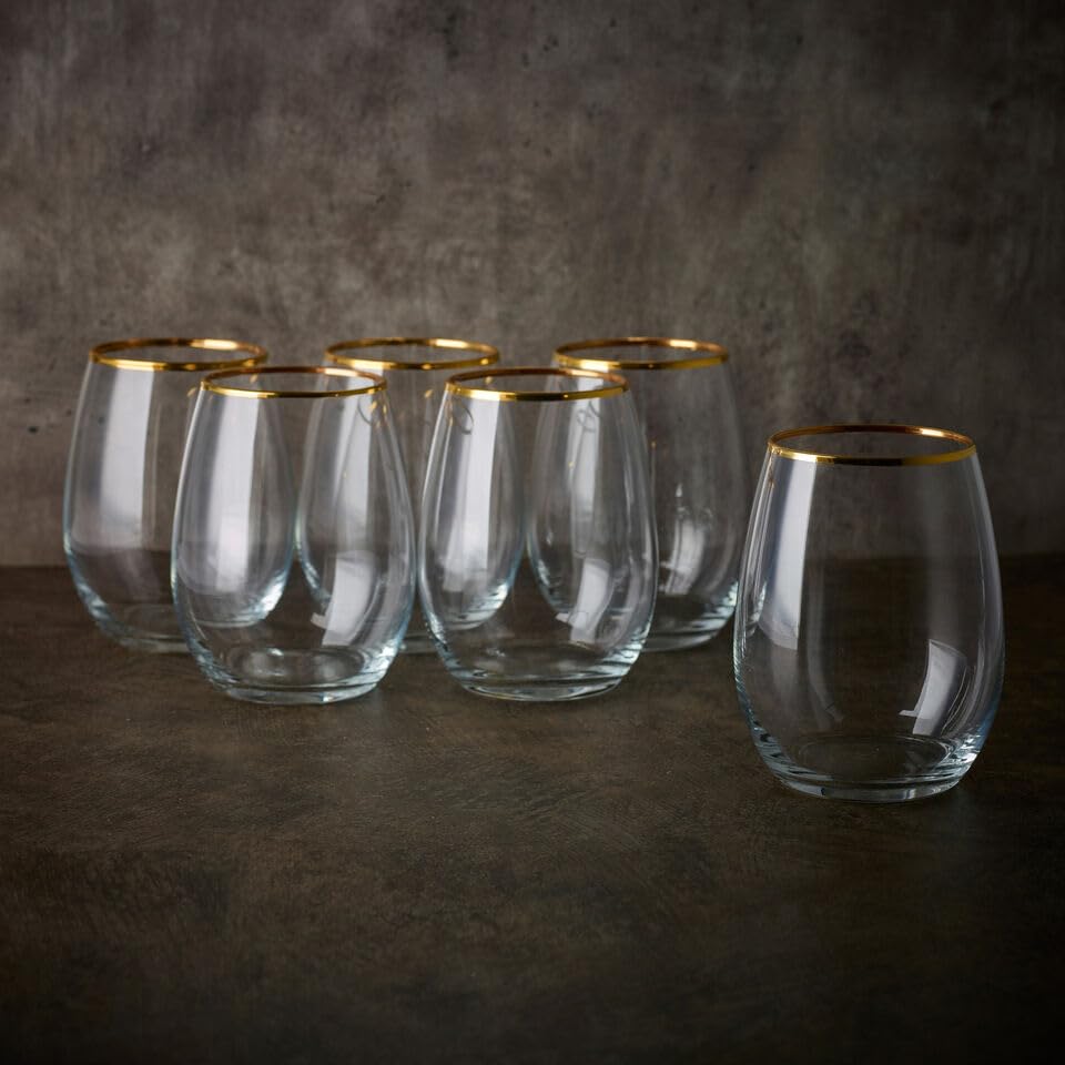 Queensway Home & Dining 570ml 12 Pcs Amber Tumbler with Gold Rim Whiskey Cocktails Glasses Perfect Party Goblet Mug Lead Free Drinkware Gifts Clear Fine Sleek Design for Celebrations