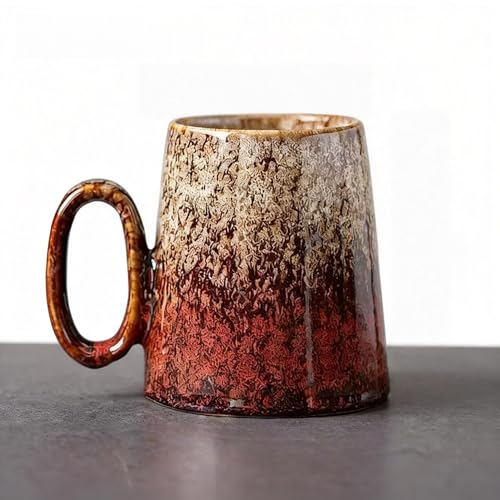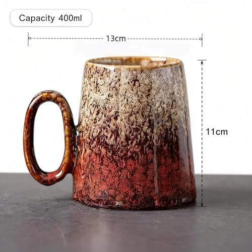 Vintage Gradient Glaze Ceramic Mug, 400ml Large Capacity Handled Cup for Coffee/Tea, Artistic Home Drinkware (White to Red Fade)