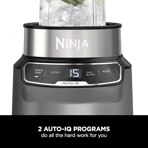 Ninja Blender with Auto-iQ, Blend in Cup, One Touch Controls, Make Smoothies, Milkshakes & Frozen Treats, Dishwasher Safe Parts, Stainless Steel Blades, 1000W, 1 x 700ml Cup, Grey/Silver, BN500UK