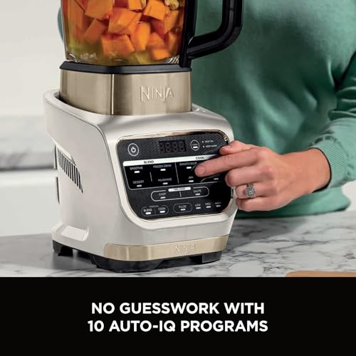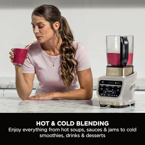 Ninja Foodi Blender & Soup Maker, 10 Auto-iQ Programs, 1.7L Glass Jug, Hot & Cold Blender, Built-In Heating Element, Tamper, Cleaning Program & Brush, 1000W, Stone Gold, HB150UKSTGD
