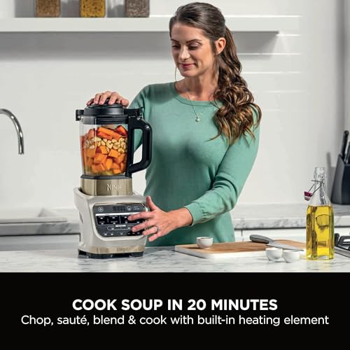 CHOP, SAUTÉ, BLEND & COOK: Blend hot and cold creations. The built-in heating element quickly cooks ingredients directly in the jug, while blending to your desired texture