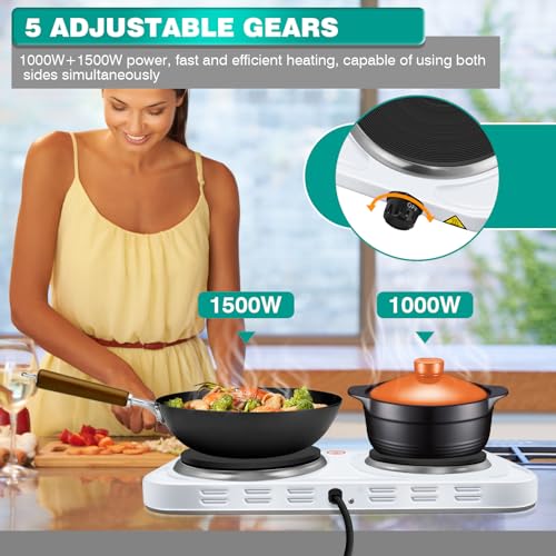 2500W Electric Cooker Hobs Hot Plate Stove Kitchen Double Ring Table Top Powerful Portable Cooker 5-Temperature Settings Burner for Warming, Cooking, Boiling, Frying, Simmering