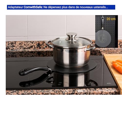ComwithSafe 20cm induction adapter, removable insulation handle, does not change color after use, heat distribution plate with black high temperature coating, induction/gas disc