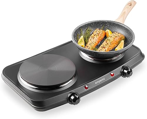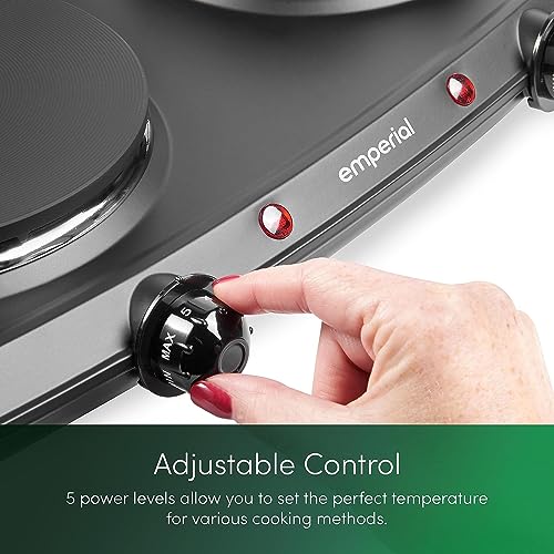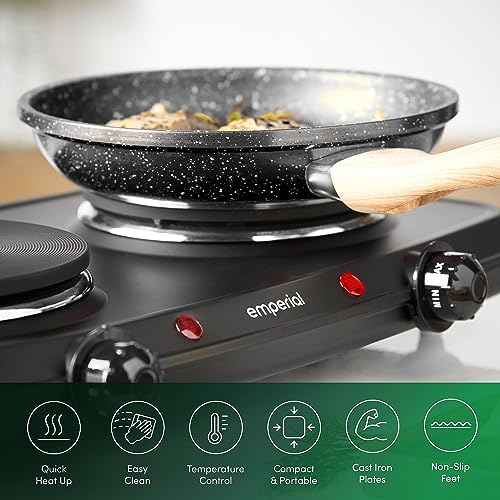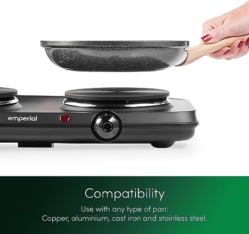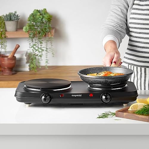 Emperial Double Hotplate Portable Camping Electric Hob 2250W, Cooktop Table top Hot Plates for Cooking with 2 Cast Iron Rings