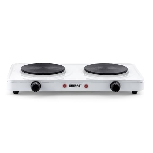 Geepas 2000W Double Hot Plate for Precise Table Top Cooking | Cast Iron Heating Plates | Portable Electric Hob Double Burner with Adjustable Thermostat for Home Kitchen Camping Caravan Cooking Compact